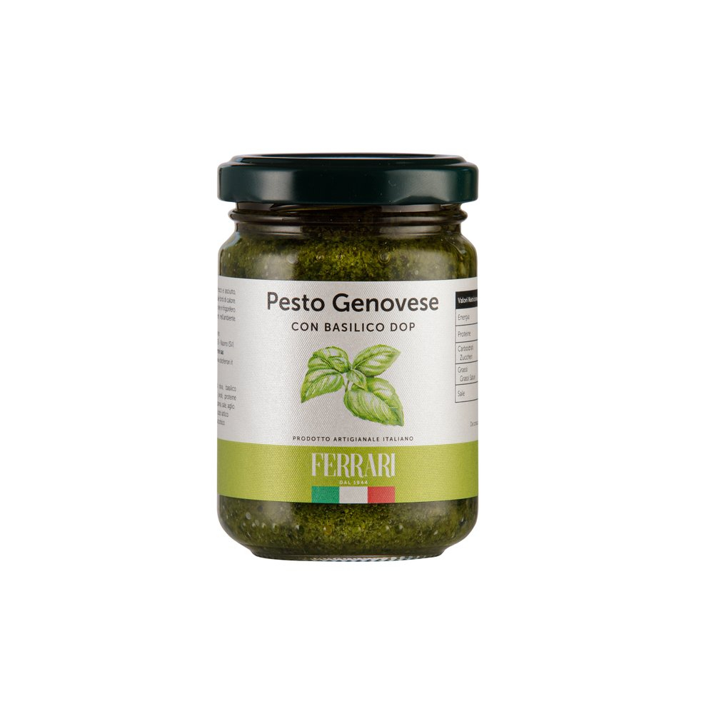 Pesto genovez Ferrari este făcut cu busuioc DOP și urmează rețeta tradițională din Liguria. Este un sos crud, un amestec in care ingredientele se amesteca la rece.